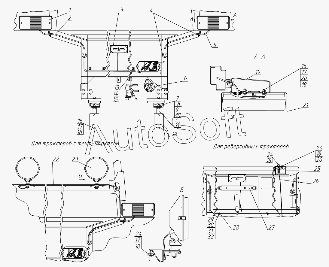 | МТЗ | 892 (2011) | 8724.31/2021 | Фара рабочая | Установка фонарей задних |