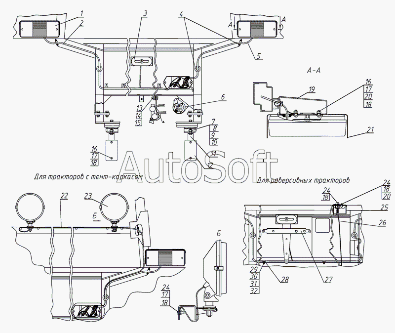| МТЗ | МТЗ-80 (2009) (2009) | 8724.31/2021 | Фара рабочая | Установка фар рабочих (для тракторов с тент-каркасом) | |
