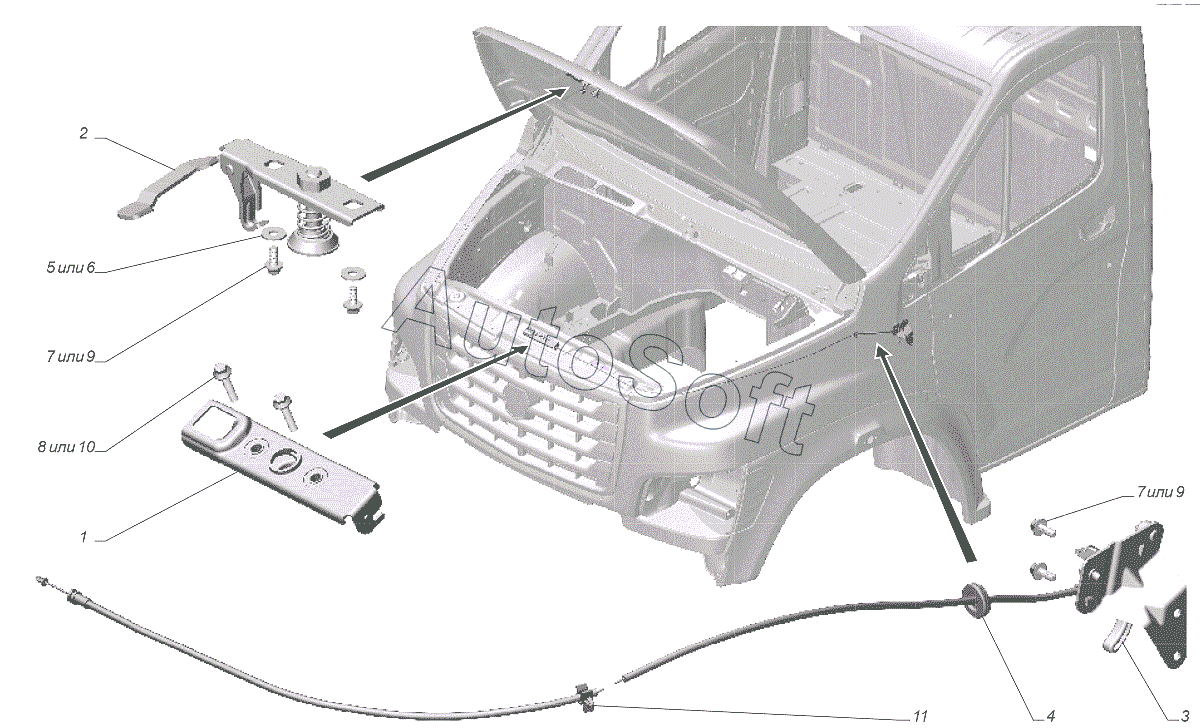 | ГАЗ | ГАЗон NEXT C41R13-60 (2021) | А21R23-8406032 | Фиксатор замка капота | С41R11-8406002 Установка замка и привода замка капота |