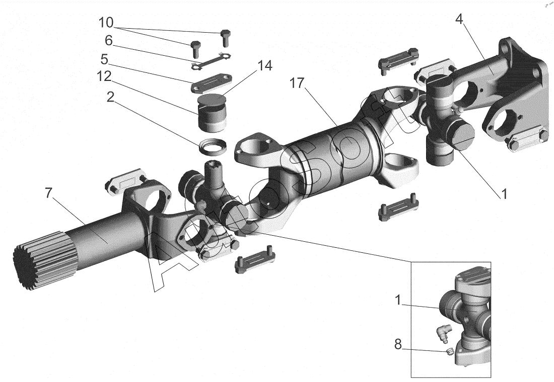 | МАЗ | МАЗ-437041 (Зубренок) (2010) | 3309-2201023 | Вилка-фланец, присоединяемая к заднему мосту | Вал карданный 4370-2201010-010 | |