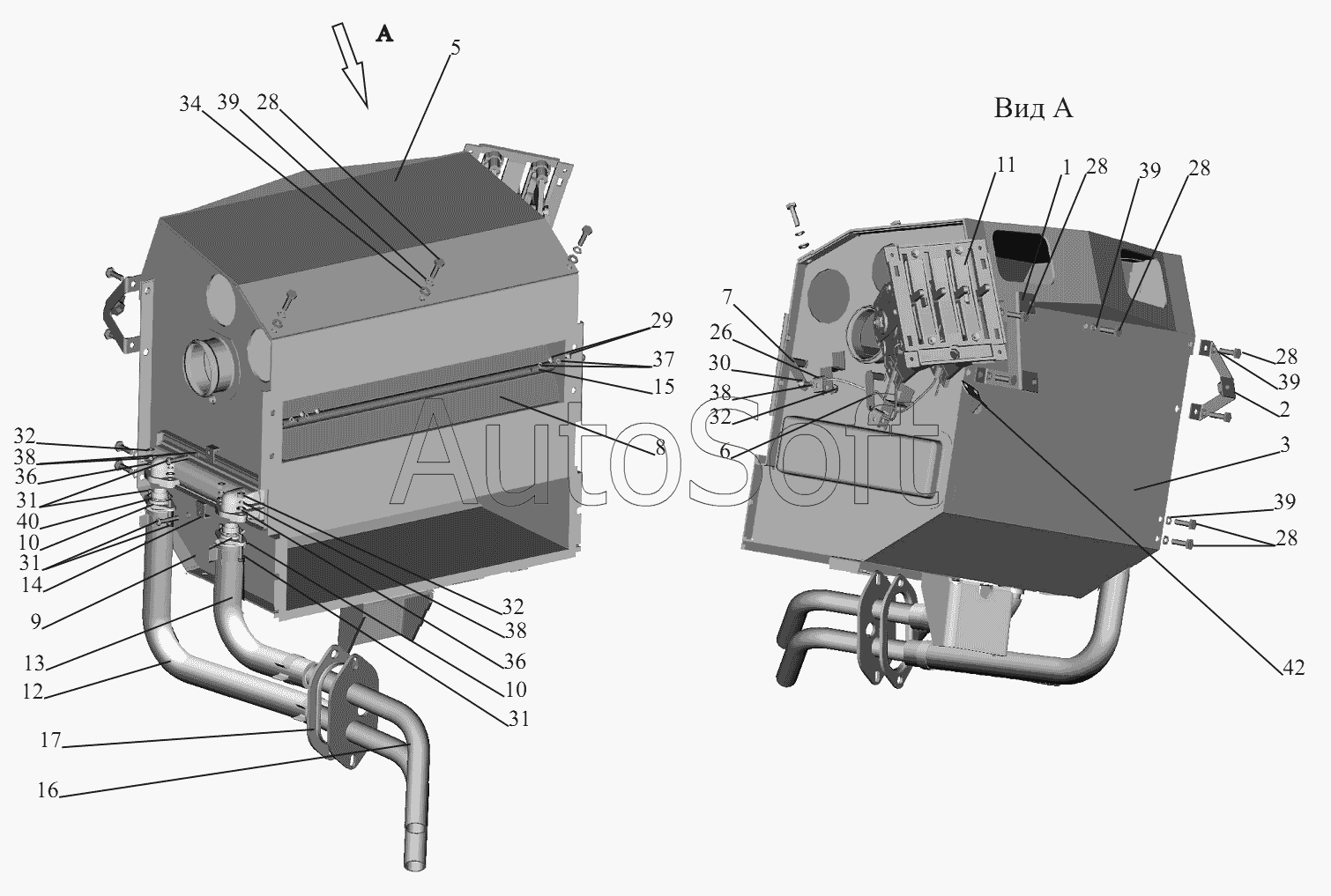 | МАЗ | МАЗ-437040 (Зубренок) (2005) | 6430-8101499 | Фланец радиатора | Блок радиатора 6430-8101010 | |