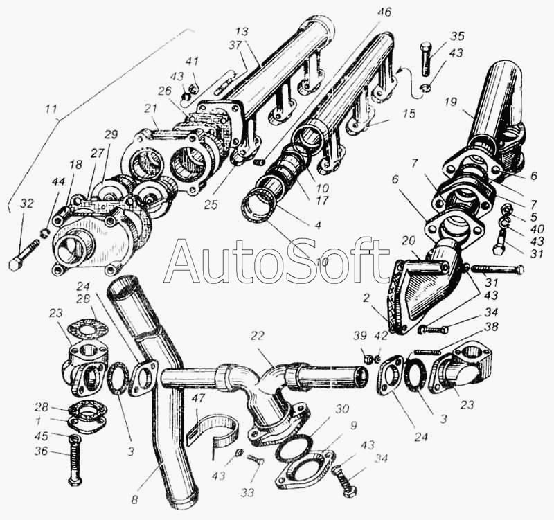 Фланец 240 240-1303246 патрубка перепускной трубы водяного охлаждения МАЗ, фланец 240-1303246