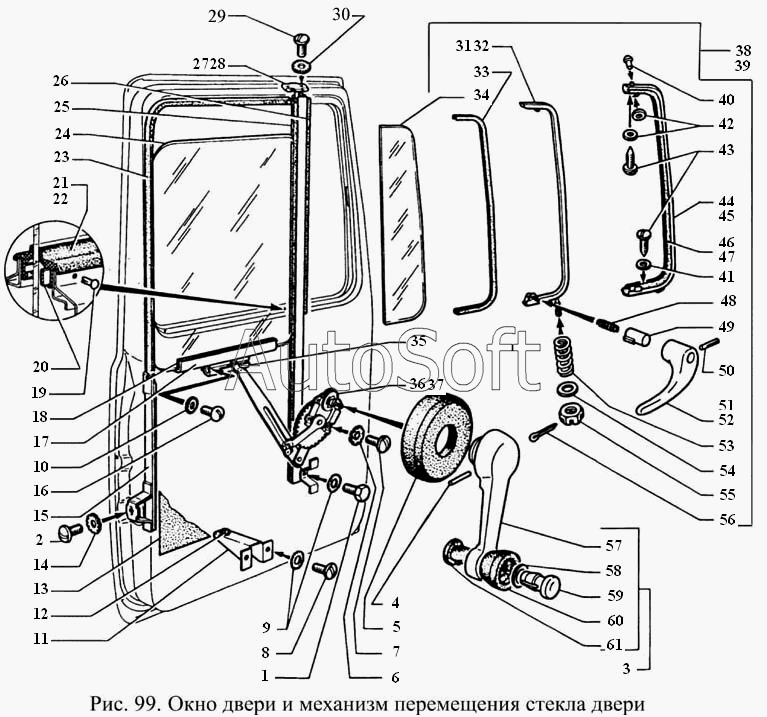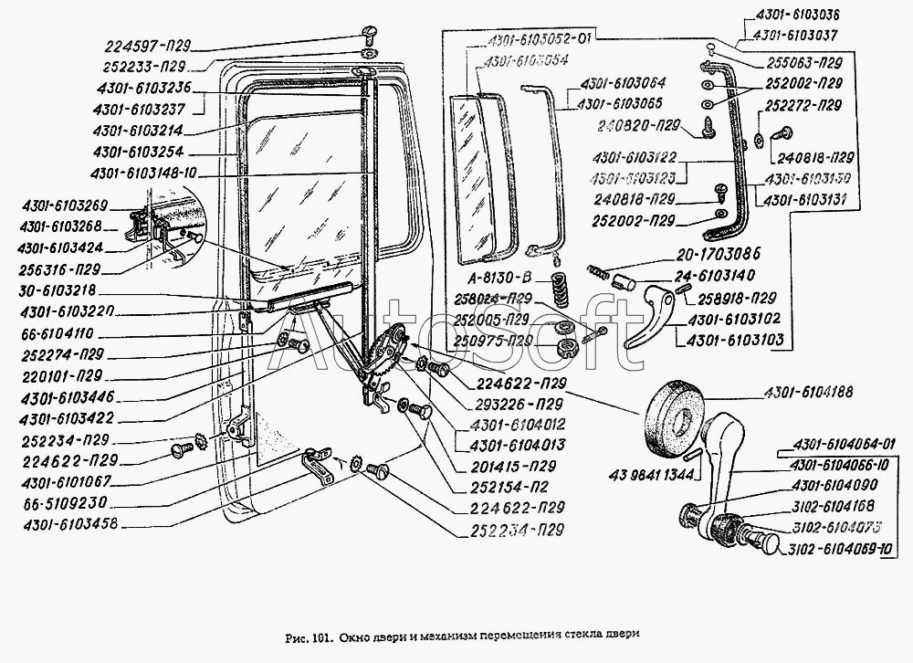 ГАЗ | ГАЗ-3306 (1994) | 4301-6103036 | Вентиляция двери правая | Окно двери и механизм перемещения стекла двери | |