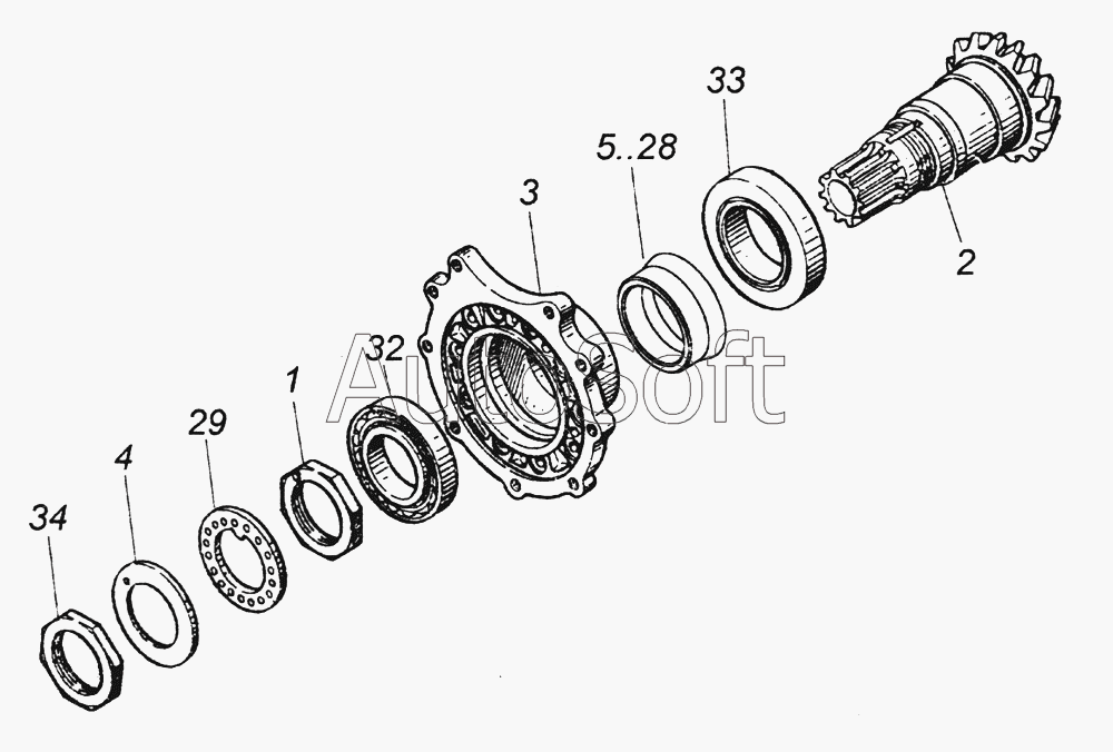 | Камский автозавод | 5511 (2003) | 5320-2502063 | Гайка подшипника ведущей конической шестерни промежуточного моста в сборе | Передача главная моста промежуточного |