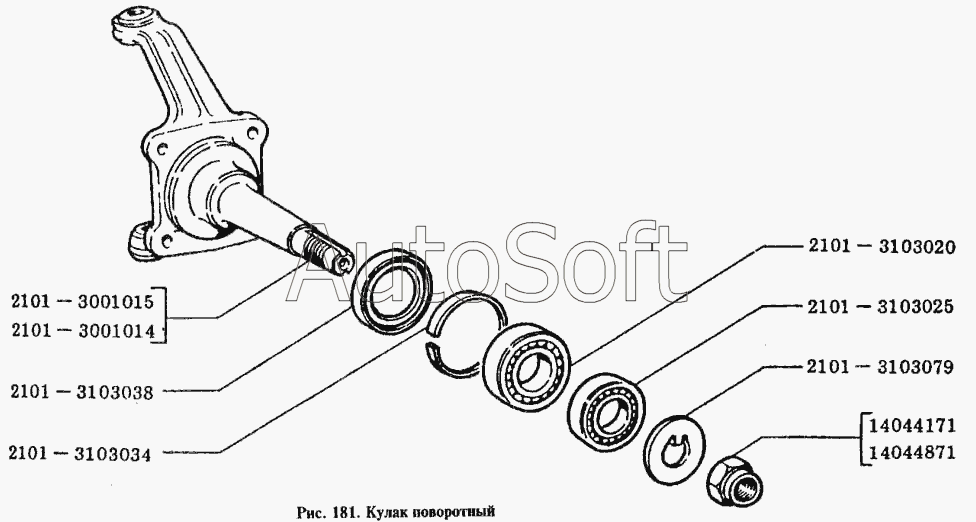 ВАЗ | ВАЗ-2101 (1982) | 14044171 | Гайка М18х1,5 самоконтрящаяся | Кулак поворотный |