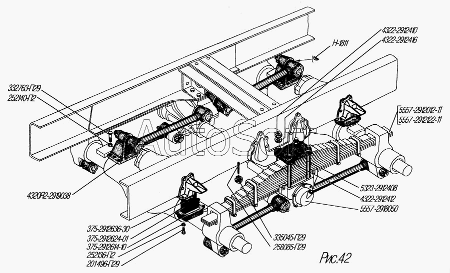 | УралАЗ | УРАЛ-5557 | 335045-П29 | Гайка М30х1,5 | Задняя балансирная подвеска | |