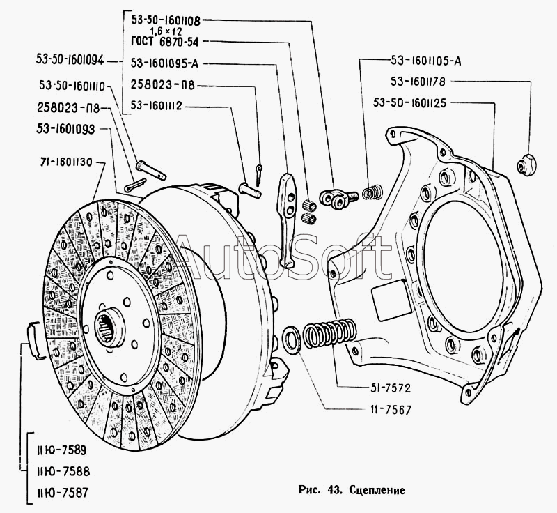 ГАЗ | ГАЗ-53 А (1989) | 53-1601178 | Гайка регулировочная | Сцепление | |