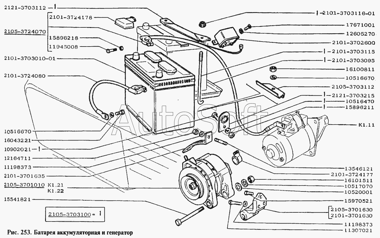 Генератор 2105-3701010 14В/52А производства ВАЗ (РФ), Код для заказа: 48830