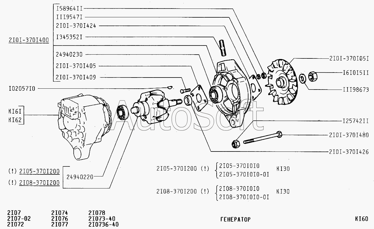 | Наименование: | Генератор 2105-3701010 14В/52А |
