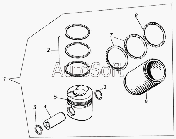 ЗИЛ | ЗИЛ-133ГЯ | 740.1000128 | Гильза цилиндра с поршнем, пальцем, поршневыми кольцами упорными кольцами и уплотнительными кольцами гильзы | Поршень, шатун, кольца | |
