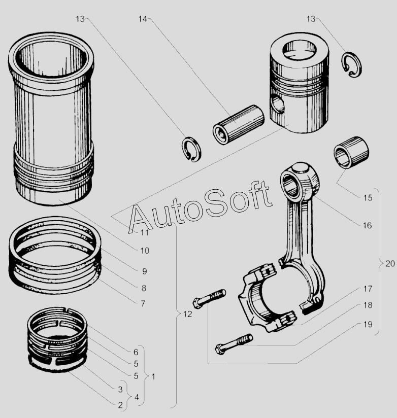ЯМЗ | ЯМЗ-236 НЕ, 236 БЕ, 7601.10 (2003) | 238НБ-1004005-А3 | Комплект гильзы, поршня, поршневых и уплотнительных колец | Поршень и шатун | |