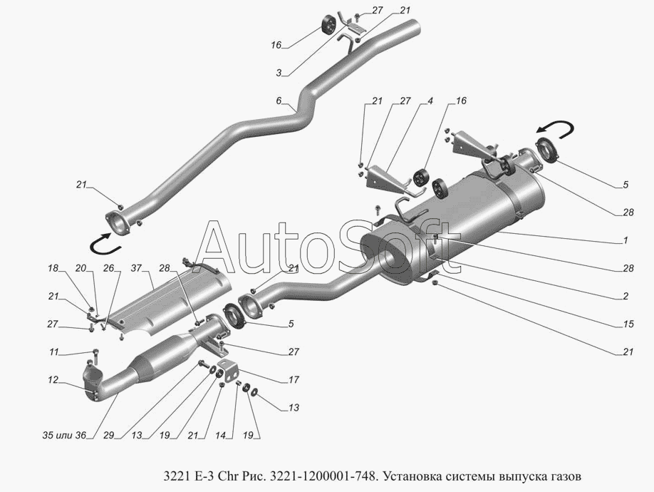 | ГАЗ | ГАЗ-3221 (доп. с дв. Chr Е-3) (2009) | 3221-1201008 | Глушитель | 3221-1200001-748. Установка системы выпуска газов |