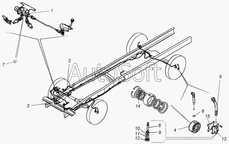 Камский автозавод | 4326 (2003г) | 4310-3124010 | Головка подвода воздуха в сборе | Цапфа поворотного кулака правая | |