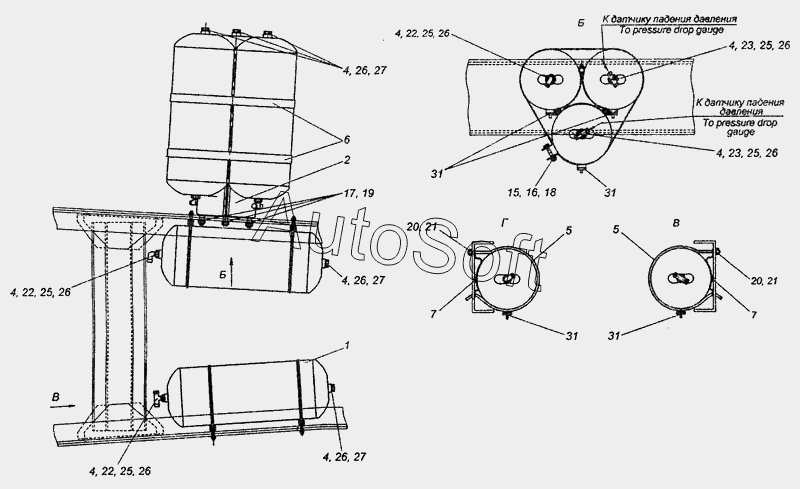 5320-3513085 Хомут крепления ресивера L=600 (изгиб)
