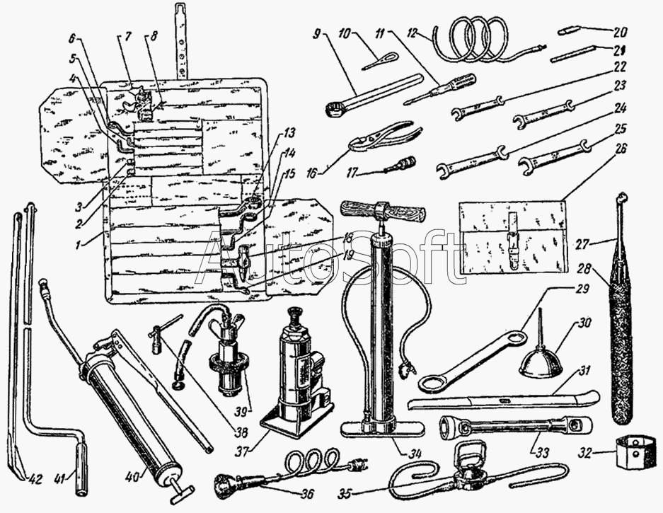 | ГАЗ | ГАЗ-53 А (1989) | ИП-3901144 | Ключ 82 для регулировки подшипников ступиц задних колес | Шоферский инструмент |