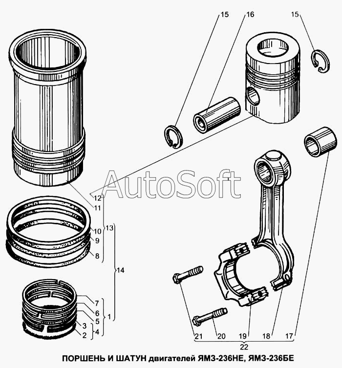 | ЯМЗ | ЯМЗ-238 АМ | 236-1004002-А2 | Кольца поршневые (комплект на один поршень) | Поршень и шатун | |