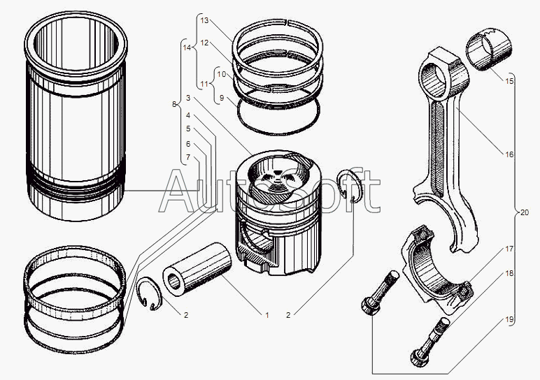 | ЯМЗ | ЯМЗ-6581.10 (Евро 3) (2007) | 658.1004002 | Комплект поршневых колец | Поршень и шатун |