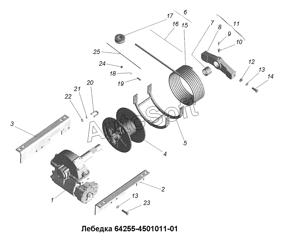 | МАЗ | МАЗ-64255 | 377227 | Шплинт 2,5х500 | Установка привода лебедки |