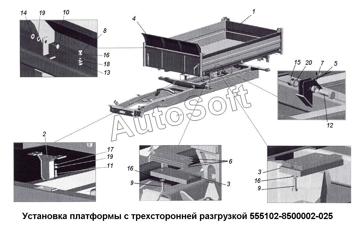 МАЗ | МАЗ-555102, 5551А2 (2007) | 555103-8510067 | Канат | Установка платформы с трехсторонней разгрузкой 555102-8500002-025 | |