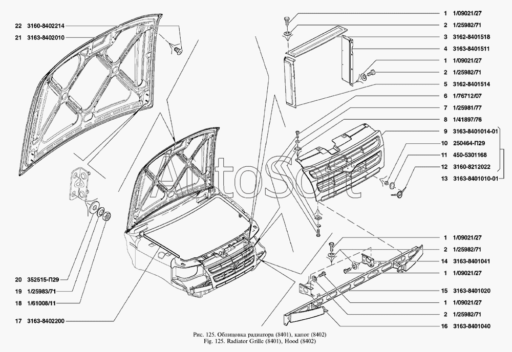 | УАЗ | УАЗ Patriot (2005) | 3163-8402010 | Капот в сборе | Капот, облицовка радиатора | |