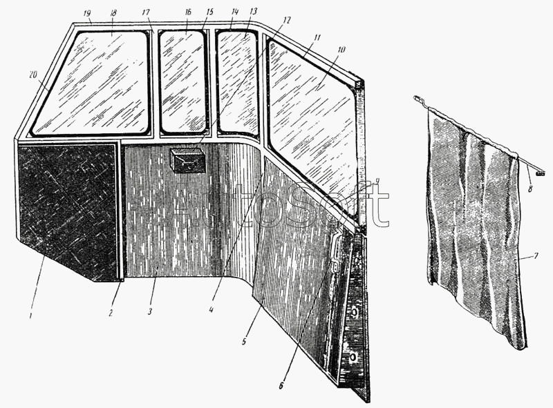 ЛАЗ | ЛАЗ 695Б | 695-8402020-Б | Заводской знак боковой | Перегородка, шторка и сумка кабины водителя |