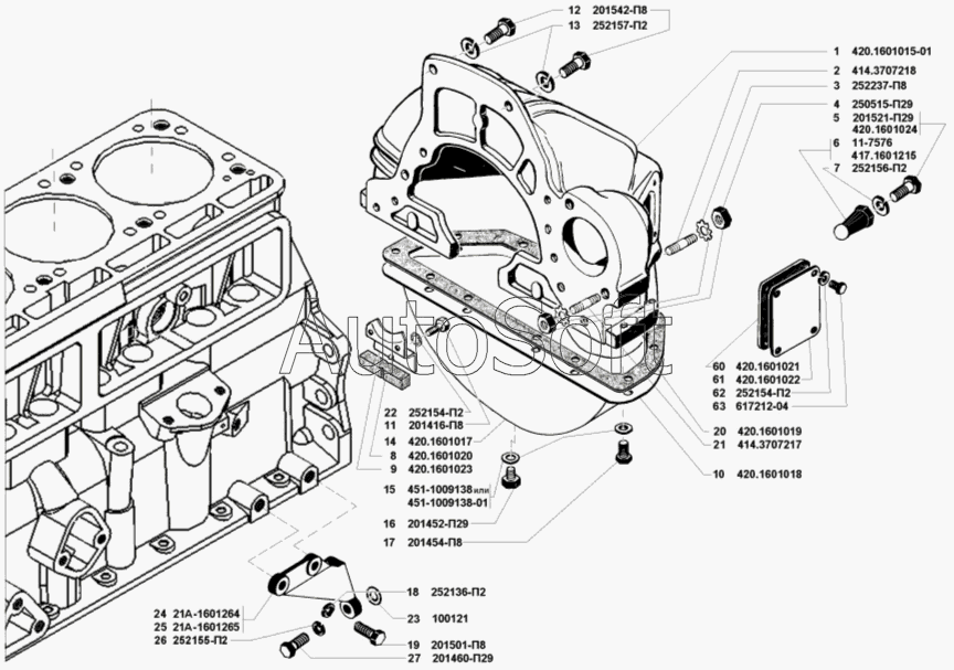 | УМЗ | УМЗ-421 (2002) | 420.1601018 | Картер сцепления - нижняя часть | Сцепление |