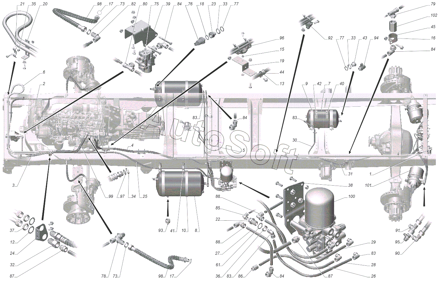 | ГАЗ | ГАЗ-33104 Валдай (2006) | 4301-3513076 | Хомут | Кран управления стояночным тормозом, воздушные баллоны, воздухоосушитель, датчики давления воздуха | |