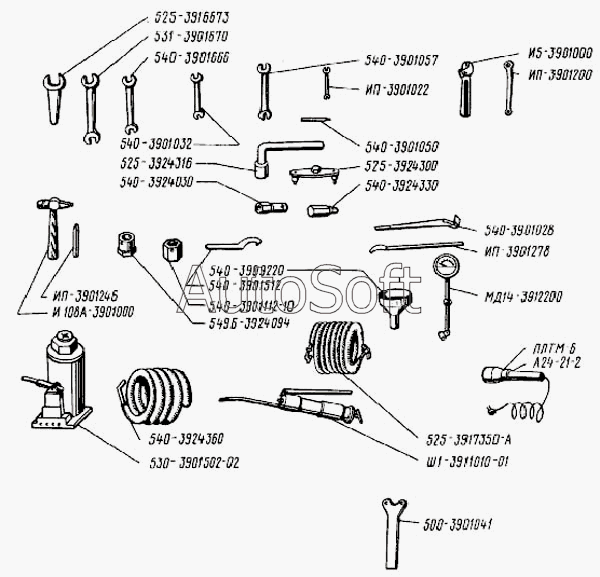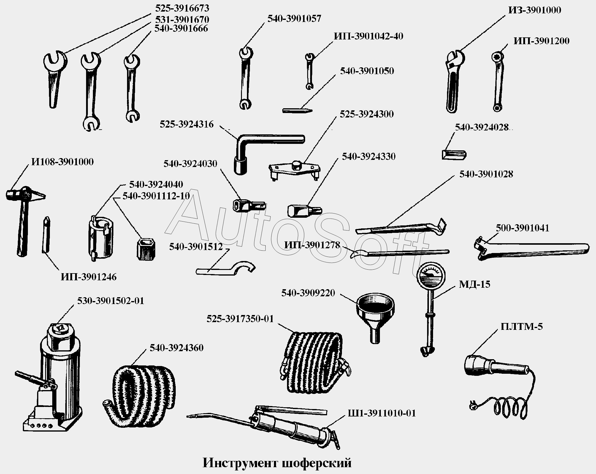 | БелАЗ | 540А (1975) | 500-3901041 | Ключ пробок рулевых тяг | Инструмент шоферский |