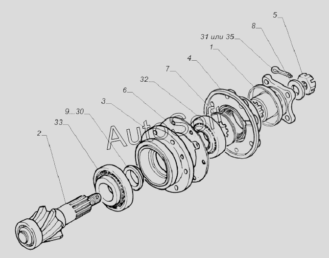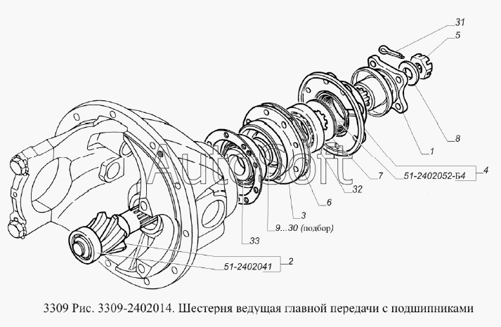 | ГАЗ | ГАЗ-33104 Валдай Евро 3 (2008) | 53А-2402182 | Кольцо регулировочное толщиной 12,58 мм | Шестерня ведущая главной передачи с подшипниками |