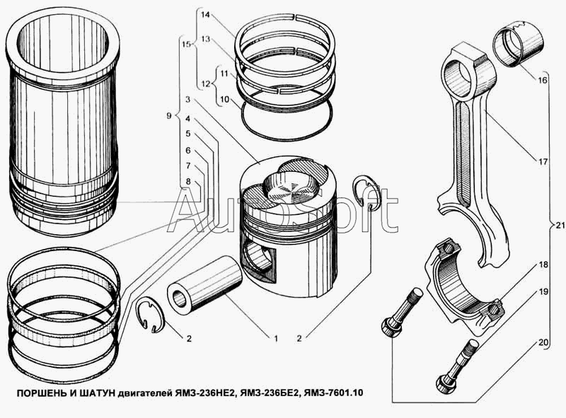 | ЯМЗ | ЯМЗ-236 НЕ, 236 БЕ, 7601.10 (2003) | 7511.1004022 | Кольцо пружинное упорное | Поршень и шатун двигателей ЯМЗ-7601.10, ЯМЗ-236НЕ2, ЯМЗ-236БЕ2 |