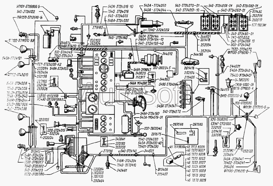 БелАЗ | 7540 | 45 7373 9012 | Колодка 8-контактная | Схема электрооборудования |