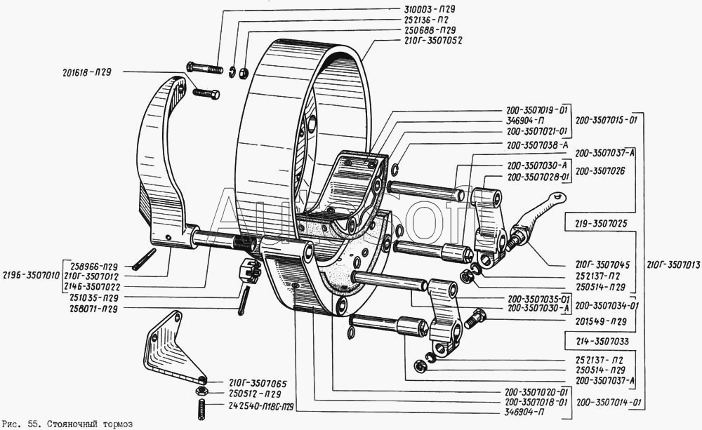| КрАЗ | КрАЗ-255 | 255Б-3507014-Б | Колодка в сборе | Тормоз стояночный | |