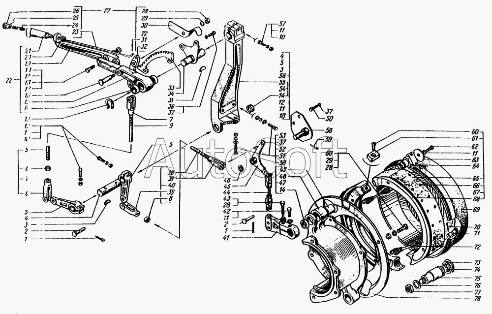 | КрАЗ | КрАЗ-6443 | 255Б-3507014-Б | Колодка в сборе | Управление стояночной тормозной системой |
