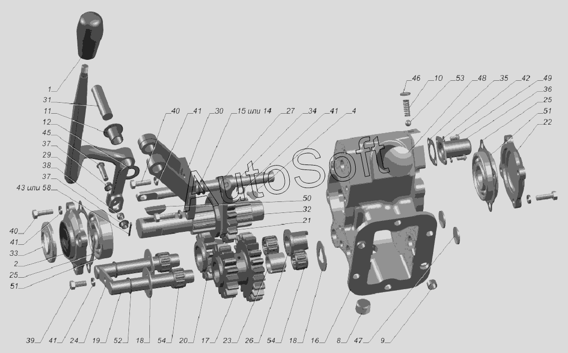 53А-4202010 КОМ самосвал, сдвоенная шестерня 4-ступенчатая КПП