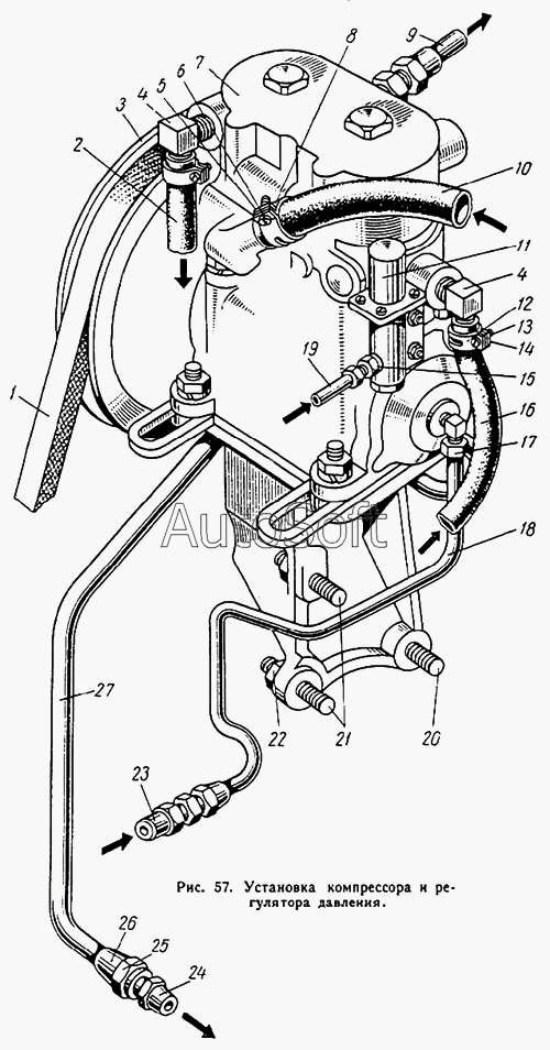 | КАЗ | КАЗ 608 | 130-3509012-1 | Компрессор паевмагической системы в сборе (с нижней крышкой и регулятором давления) | Схема пневматической системы | |