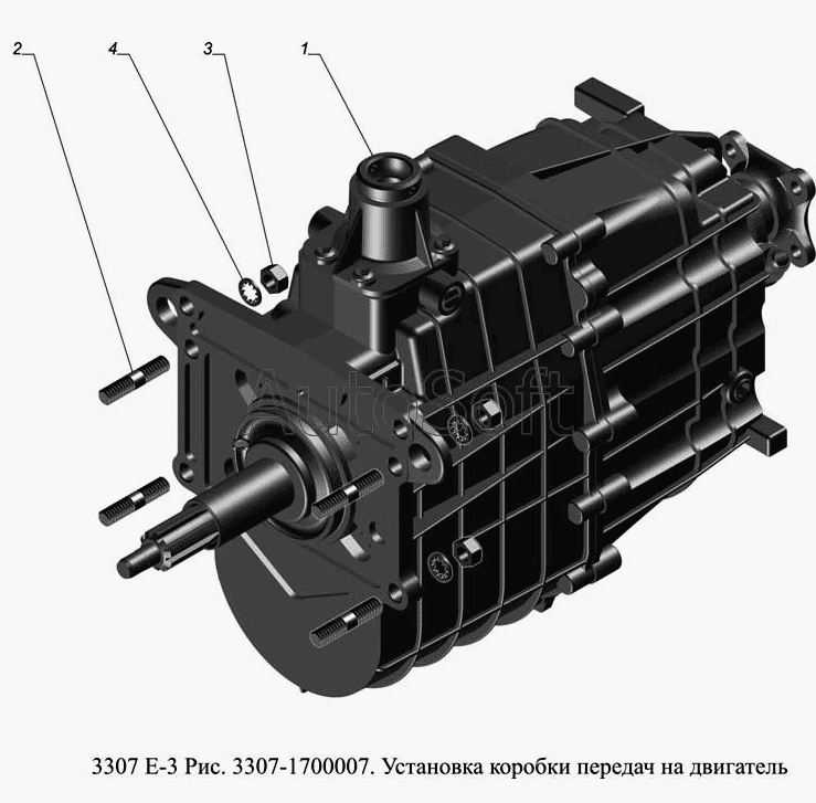 | ГАЗ | ГАЗ-3307 (доп. с дв. ЗМЗ Е 3) (2009) | 3307-1700010-20 | Коробка передач | 3307-1700007.Установка коробки передач на двигатель |
