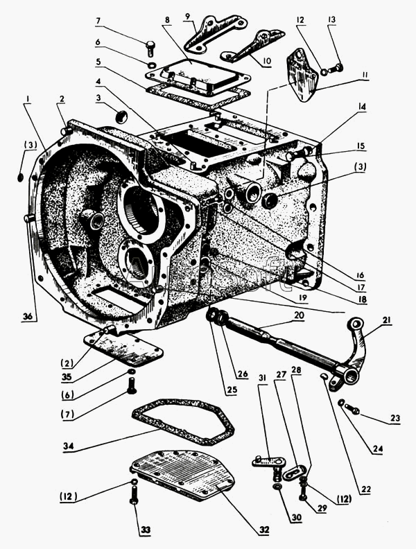 | ММЗ | Д-245.9 | 36-1601016 | Корпус | Привод муфты сцепления |