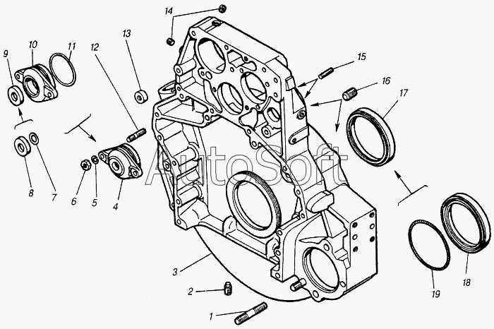 | Камский автозавод | 5297 (2004) | 740.1029170 | Корпус подшипника в сборе | Установка картера маховика |
