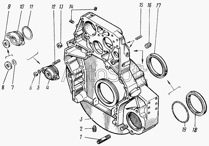 | Камский автозавод | 4326 (2001) | 740.1029170 | Корпус подшипника в сборе | Установка картера маховика |