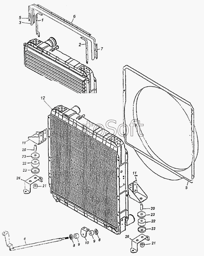 Камский автозавод | 65115 (2001) | 53205-1309010 | Кожух вентилятора с накладкой в сборе | Установка радиатора и уплотнителей радиатора | |