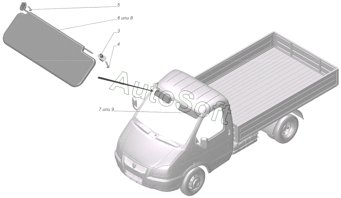 | Наименование: | Козырек 3302-8204010-91 солнцезащитный правый |