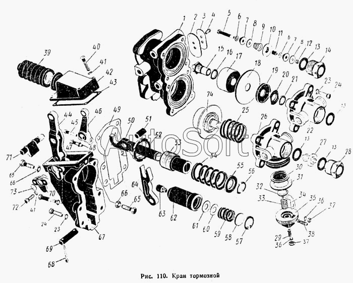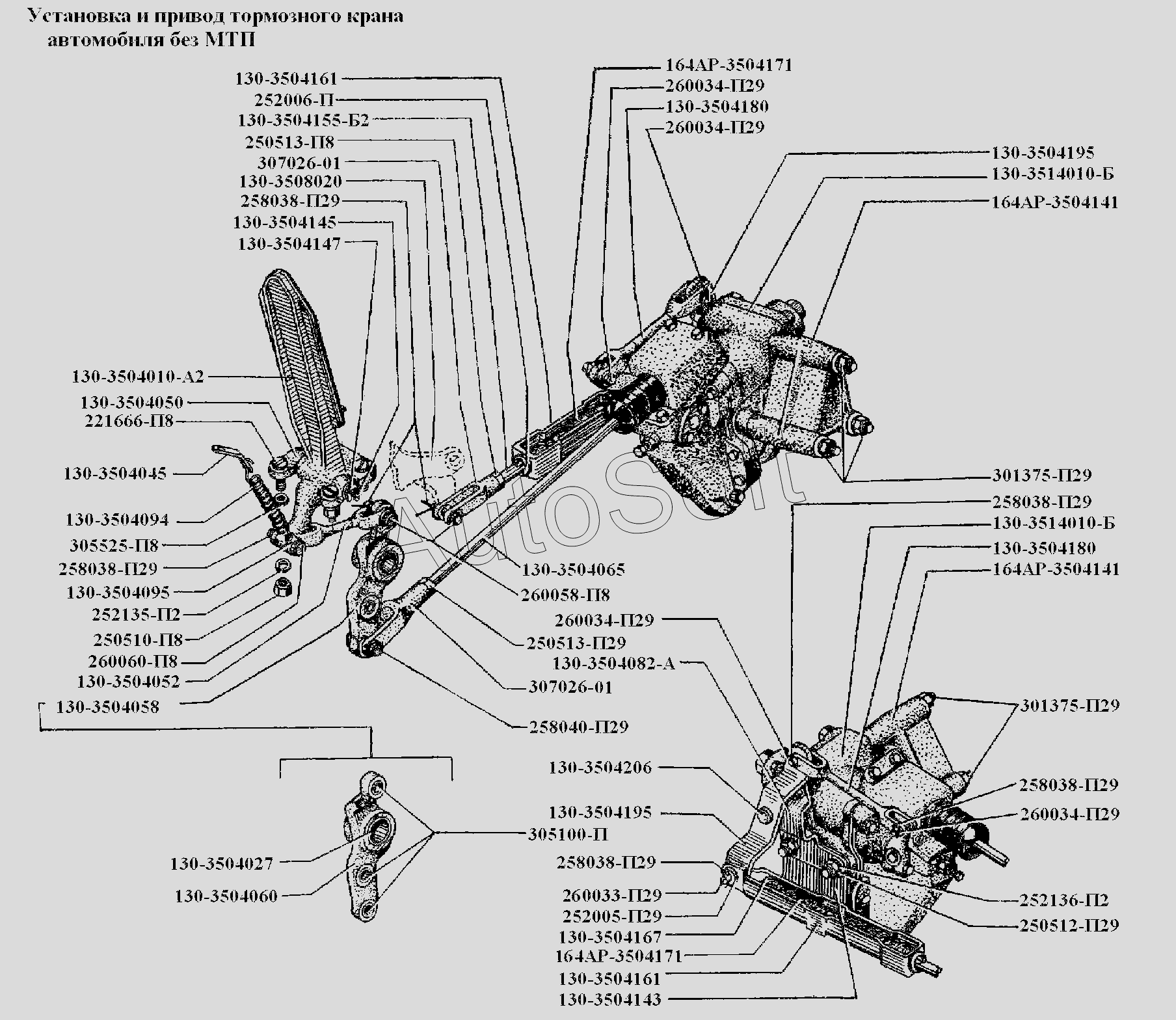 | Наименование: | Кран 130-3514010 тормозной 2-секционный старого образца |