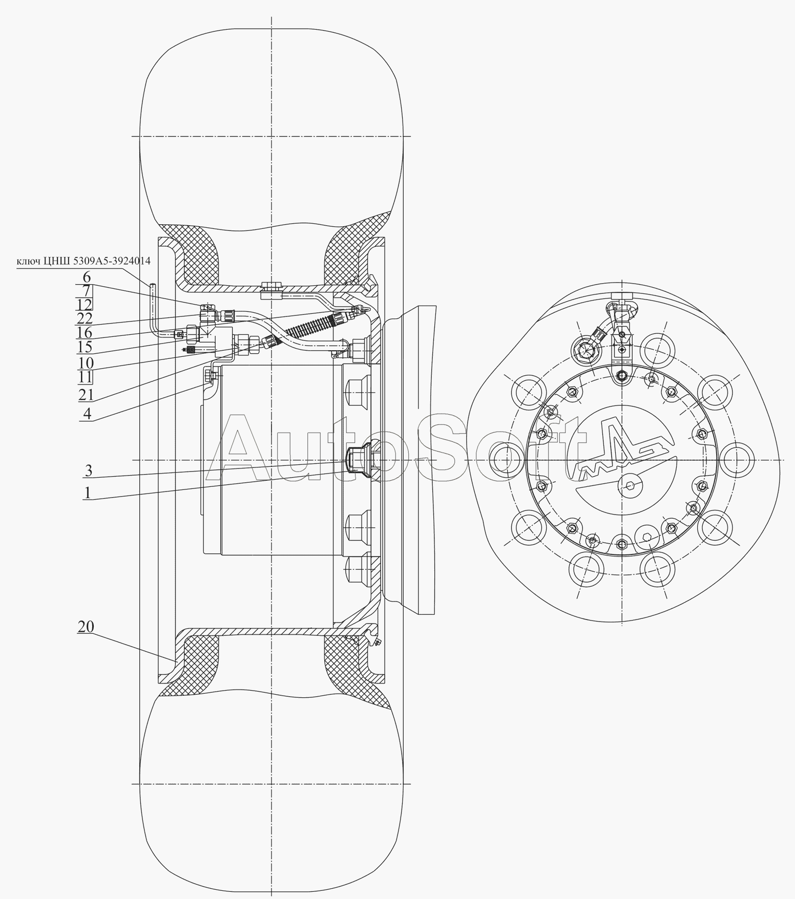 МАЗ | МАЗ-631705 (2010) | 255Б-4224110-Б | Кран колесный | Колесо, камера и покрышка |
