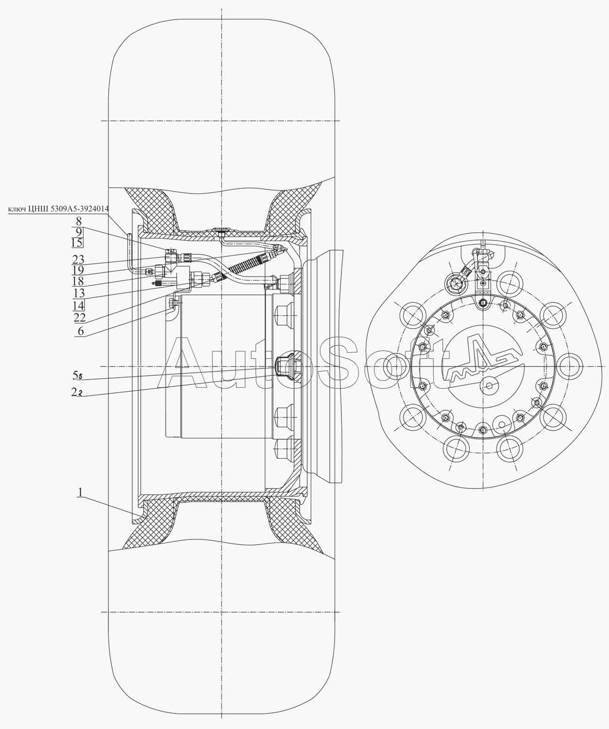 МАЗ | МАЗ-642505, 642508 (2006) | 255Б-4224110-Б | Кран колесный | Колесо, камера и покрышка | |