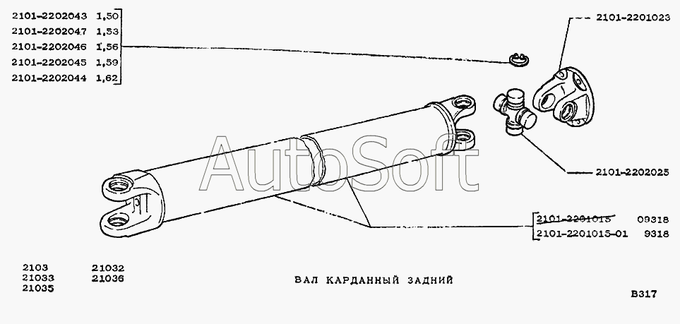 ВАЗ | ВАЗ-2101 (1982) | 2101-2202025 | Крестовина карданного вала | Вал карданный задний | |