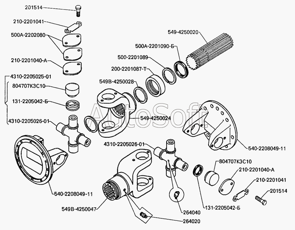 | Камский автозавод | 4326 (2001) | 4310-2205025-02 | Крестовина с подшипниками | Вал карданный заднего моста с карданами в сборе |