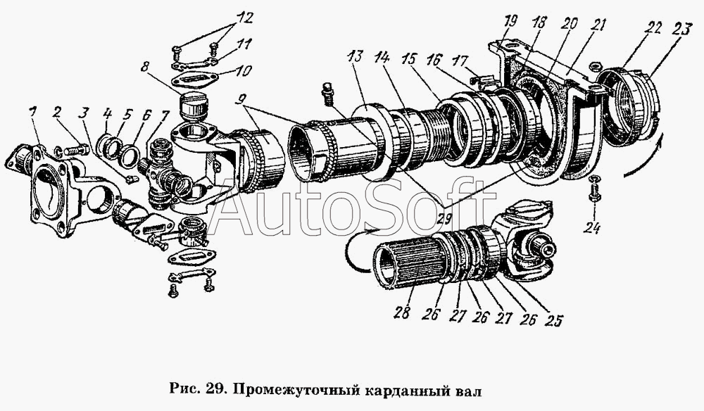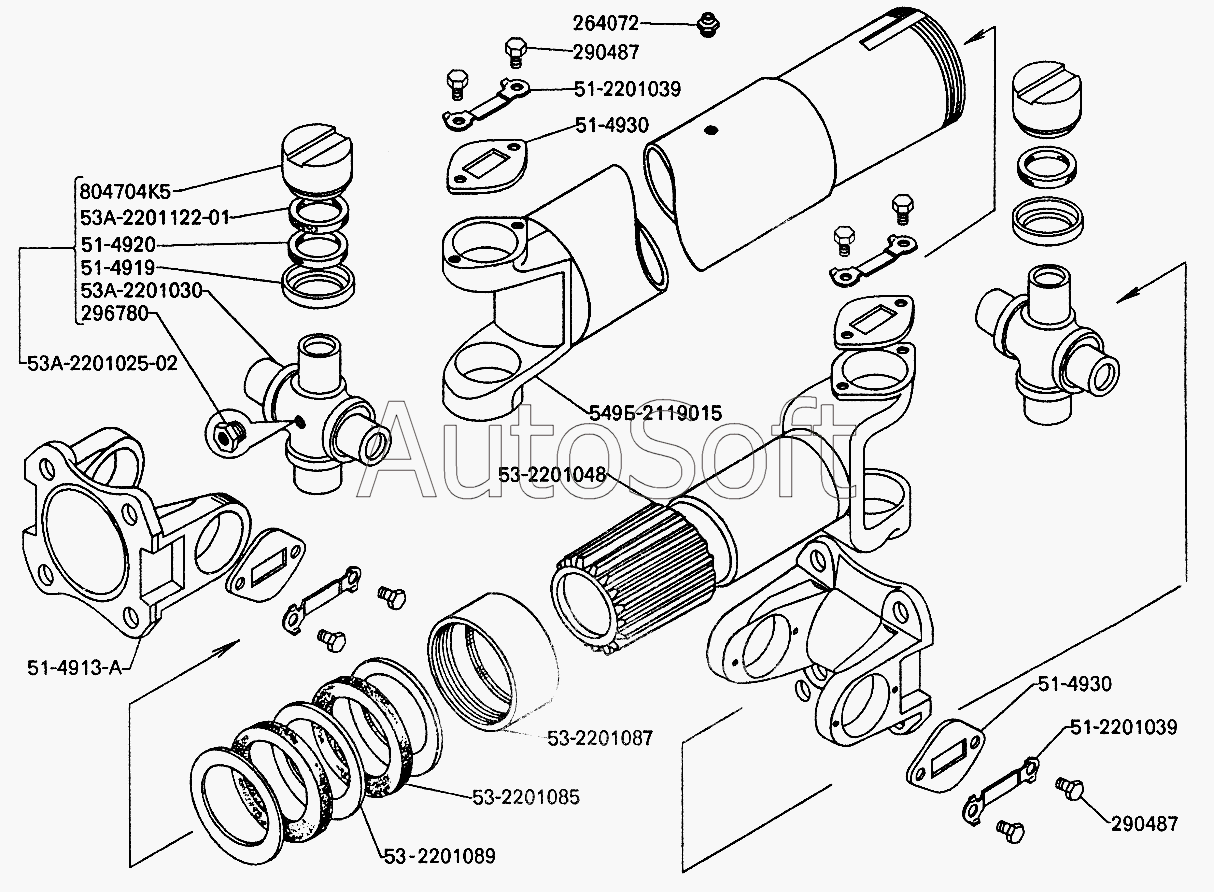 ГАЗ | ГАЗ-53 А (1989) | 53А-2201025-02 | Крестовина кардана с сальниками и подшипниками в сборе | Промежуточный карданный вал |