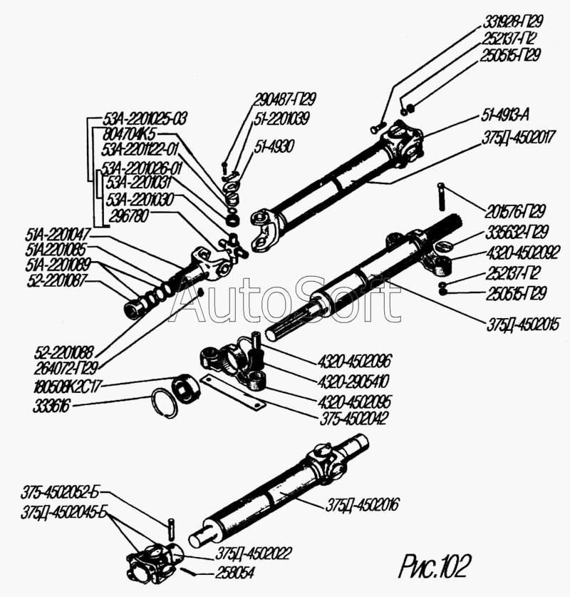 ГАЗ | ГАЗ-3307 (2000) | 53А-2201025-03 | Комплект крестовины | Карданные и промежуточные валы | |