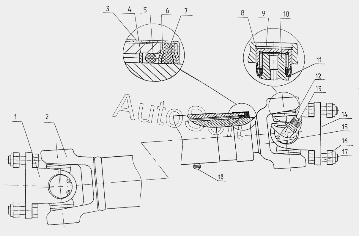 УралАЗ | УРАЛ-4320 (1981) | 53А-2201025 | Крестовина с подшипниками в сборе | Привод лебедки | |