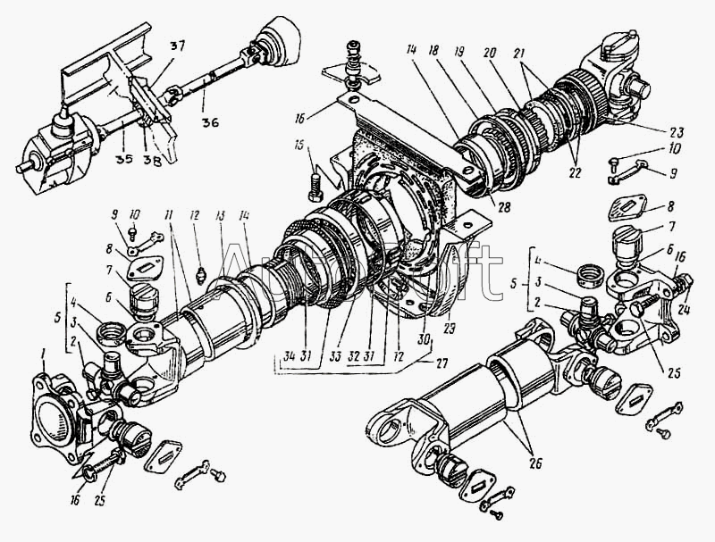 ГАЗ | ГАЗ-66 (Каталог 1983 г.) (1983) | 53А-2201025 | Крестовина кардана с сальниками и подшипниками в сборе | Карданные валы | |